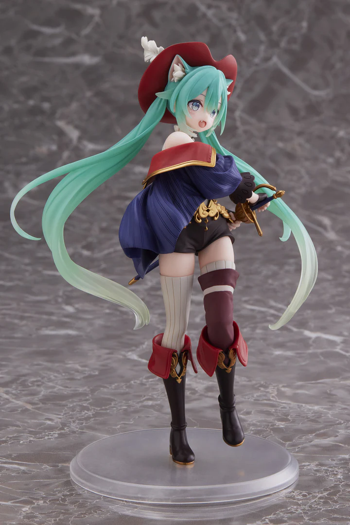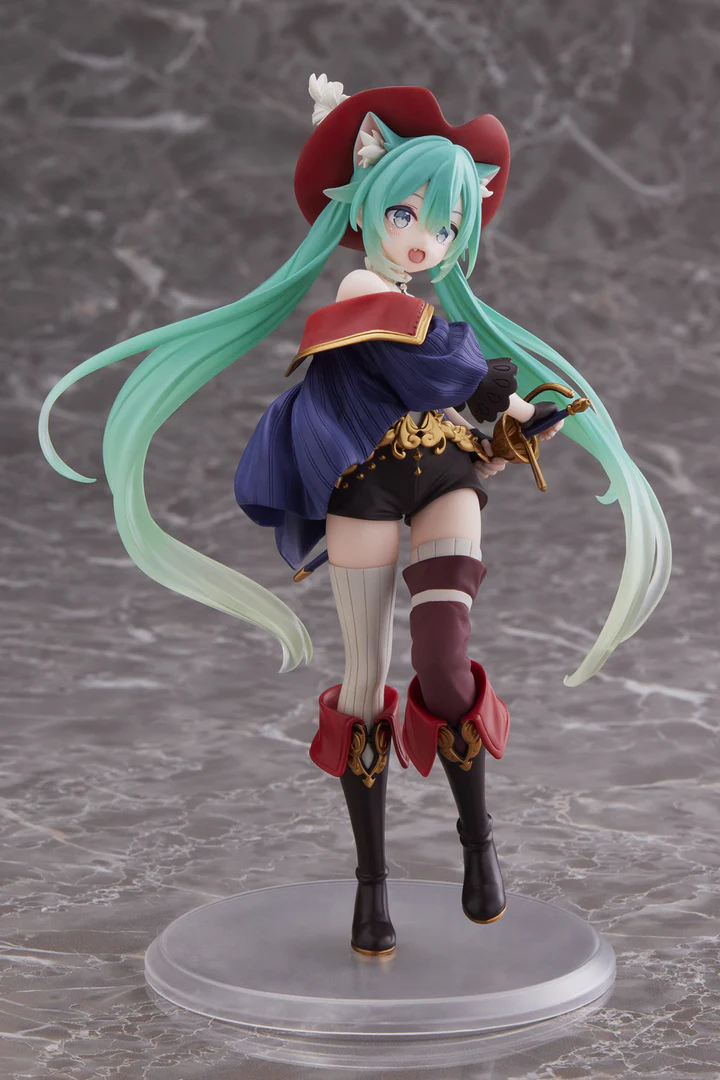 We’re happy to introduce a new TAITO Wonderland figure featuring Hatsune Miku! This adorable figure reimagines the virtual pop-idol as the swashbuckling fairy tale character, Puss in Boots, donning a beautiful fantasy outfit and cat ears matching Miku’s recognizable teal hair. This is a perfect addition to any Hatsune Miku fan’s collection!